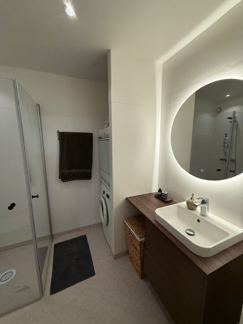 Här har vi hjälpt en kund med en totalrenovering av badrummet, där vi tog hand om hela processen från planering till färdigt resultat. Projektet inkluderade bland annat nya ytskikt, installation av kakel och klinker, uppdaterad belysning och VVS-lösningar.